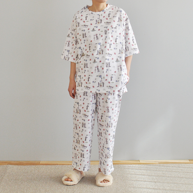 こなれた印象の淡〜いプリントが優しげな、袖を通すのがわくわくする、ほっこりゆるゆるなルームウエアが登場です。